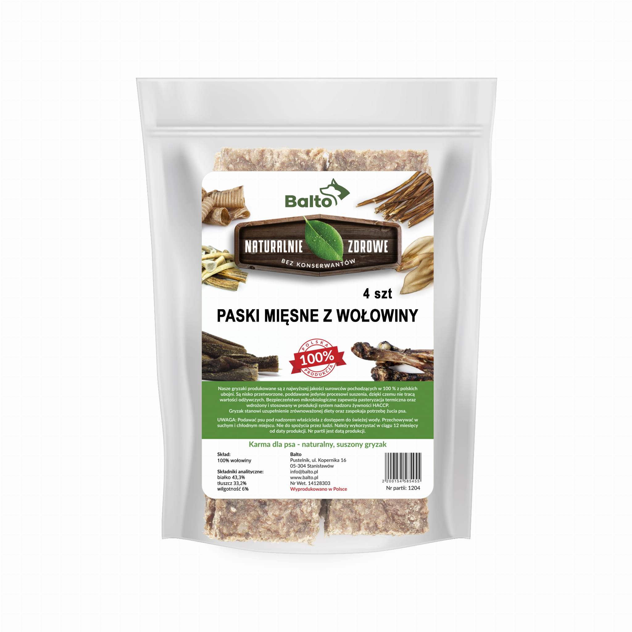 - produkt monobiałkowy - tylko wołowina